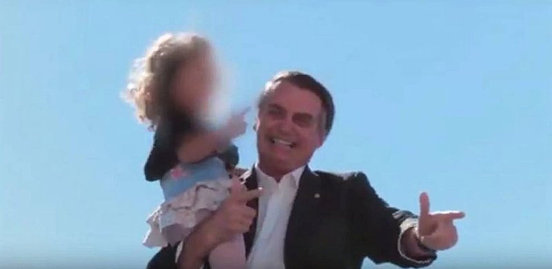 O presidente estava em cima de um carro de som quando pegou a menina no colo. Após a polêmica, o deputado federal delegado Waldir (PSL-GO), tentou explicar a cena e piorou. “Tem que fazer a distinção. Para as pessoas de bem (o gesto) é coragem, honestidade, ser patriota. Mas para o bandido pode ser uma arma.”