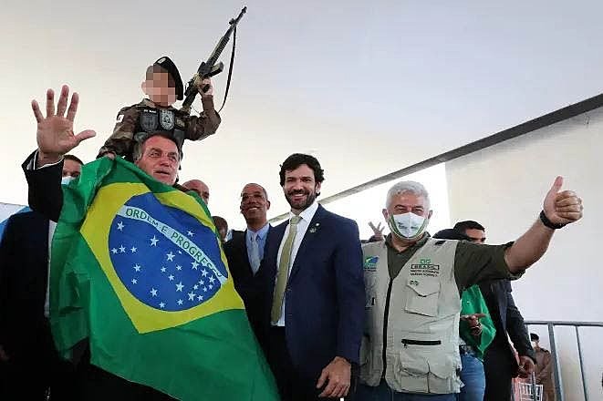 Em Belo Horizonte (MG), Bolsonaro cumpria agenda para a inauguração das obras de um centro de vacinas, quando solicitou que os seguranças franqueassem a entrada no palco de uma criança fardada de policial e armada.