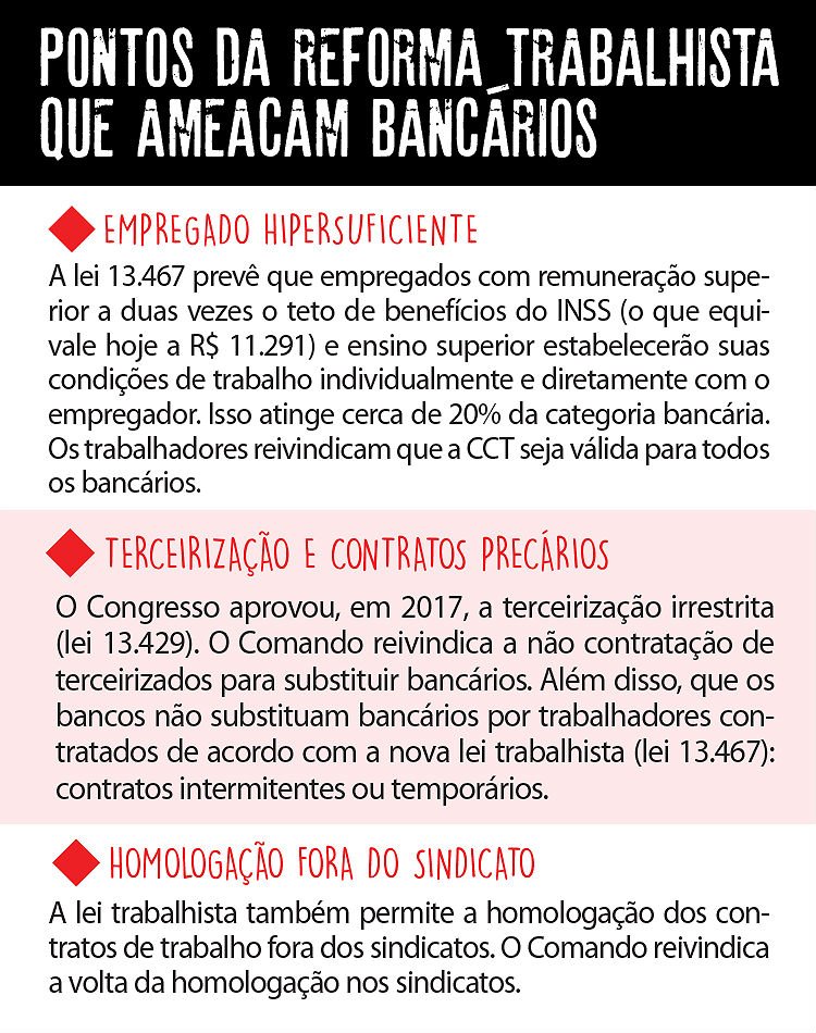“Se dizem que não vão contratar intermitentes, temporários, terceirizados, por que não assinam?”, diz a presidenta da Confederação Nacional dos Trabalhadores do Ramo Financeiro (Contraf-CUT), Juvandia Moreira, uma das coordenadoras do Comando Nacional. “Queremos garantias. Negociação prevê assinatura, é assim que se firma compromissos”, afirma, criticando as mudanças em curso no país, incluindo a “reforma” trabalhista. “Esse tipo de legislação retira direitos, enfraquece o mercado interno, o sistema previdenciário. Todos perdem para o 1% mais rico ganhar ainda mais.”