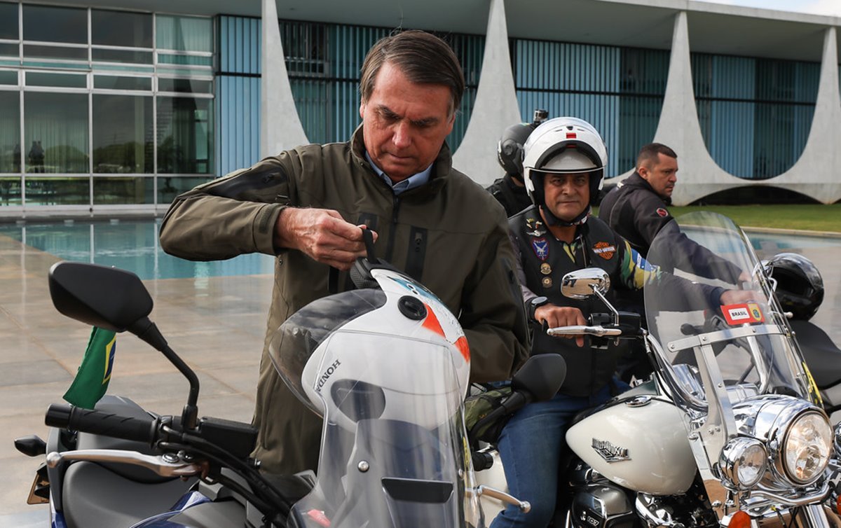 Sem máscara, Bolsonaro reuniu apoiadores para passeio de moto no domingo, voltando a causar aglomeração – Foto: Marcos Corrêa/PR