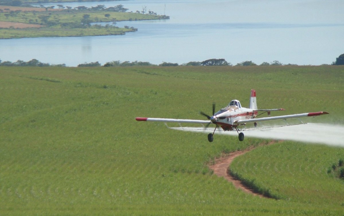 Contaminação: avião agrícola pulveriza agrotóxicos em lavouras próximas ao rio – Foto: Edmarjr/Commons Wikimedia