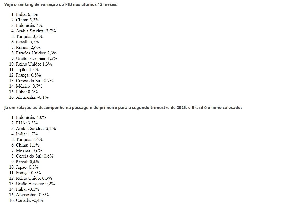 Apesar da posição de destaque, o desempenho trimestral mostra desaceleração. O crescimento anterior, entre o quarto trimestre de 2024 e o primeiro de 2025, havia sido de 1,3%.