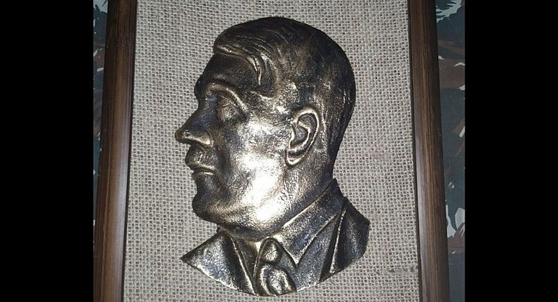 Na realidade, porém, para além de itens de memorabilia, réplicas ou itens originais de valor histórico, a loja também comercializa camisetas e canecas com símbolos e líderes nazistas, além de um quadro com o busto do próprio Adolf Hitler, como pode ser visto na imagem acima.