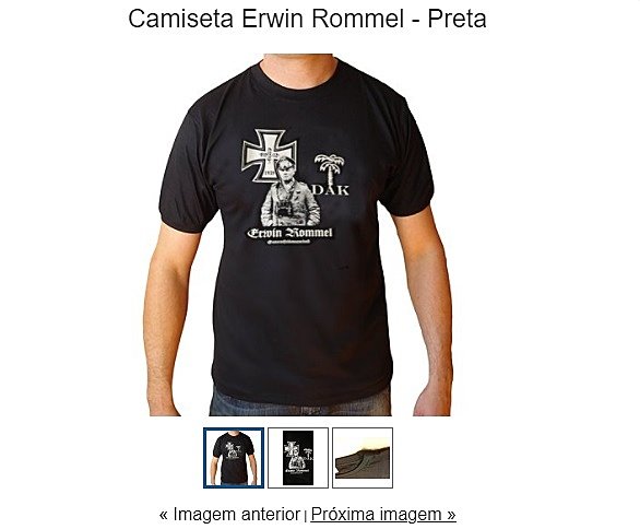 Camiseta de produção atual com a imagem do general Ervin Rommell, a “raposa do Deserto de Hitler” / Reprodução