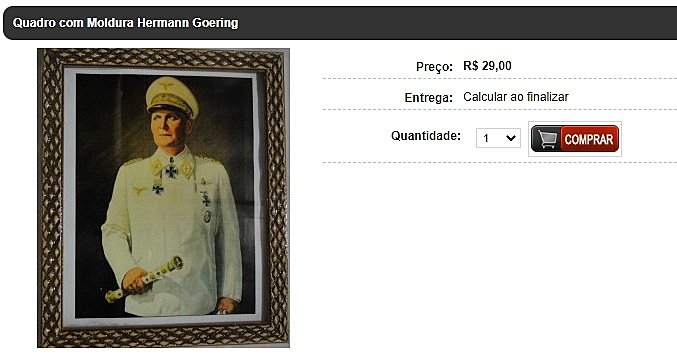 Quadro com a imagem de Hermann Göring, chefe da Força Aérea Nazista, à venda na loja Panzer Militaria por R$ 29 / Reprodução
