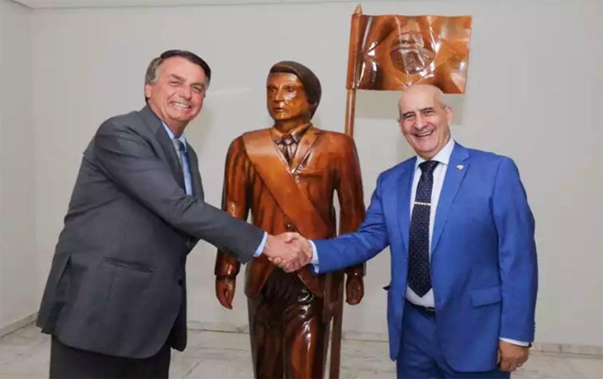 Bolsonaro e o fiel ministro da Secretaria-geral da Presidência, Luiz Ramos, com estátua do “mito” que decepcionou sua base – Foto: Reprodução/Twitter