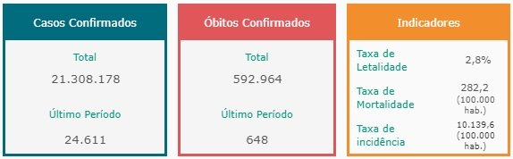 Hoje (23) o Brasil registrou 648 mortes pela covid-19 em um período de 24 horas monitorado pelo Conselho Nacional dos Secretários de Saúde (Conass). Com a soma, são 592.964 vítimas no país, que é o segundo com mais mortes por covid desde o início do surto, em março de 2020. Além disso, o Brasil é o país com mais óbitos registrados neste ano.