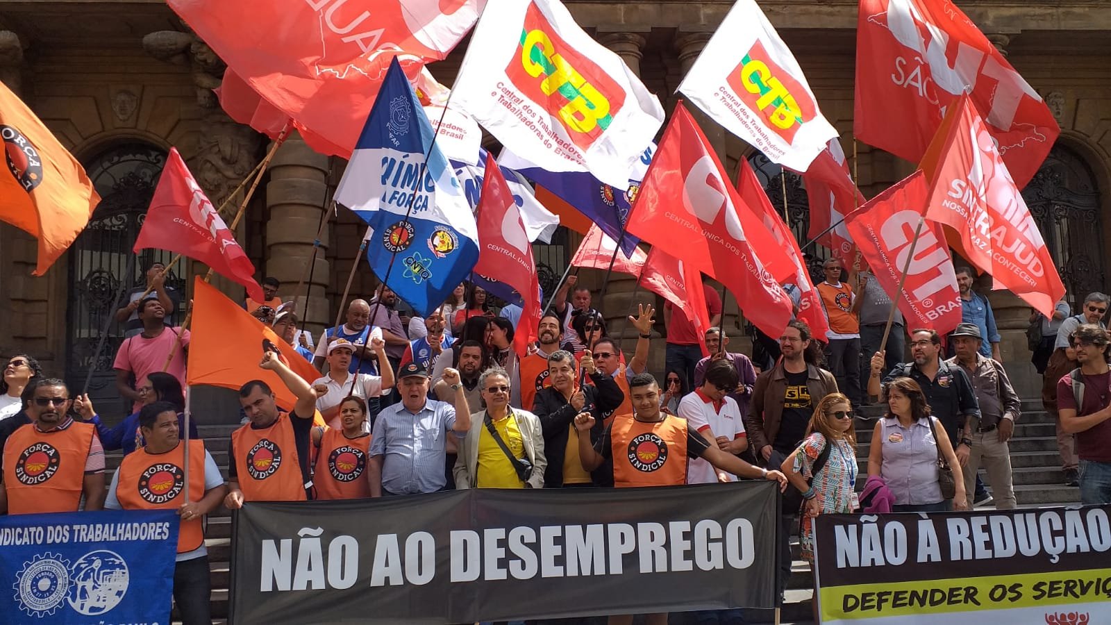 Fábio Casseb – O ato realizado em frente ao Teatro Municipal, na Praça Ramos de Azevedo, na região central de São Paulo foi convocado, pelo movimento sindical, como mobilização preparatória para um calendário de protestos a ser definido. “Este é um esquenta para uma série de mobilizações que iremos realizar na luta por mudanças na economia e pela geração de empregos”, explica Miguel Torres, presidente da Força Sindical.