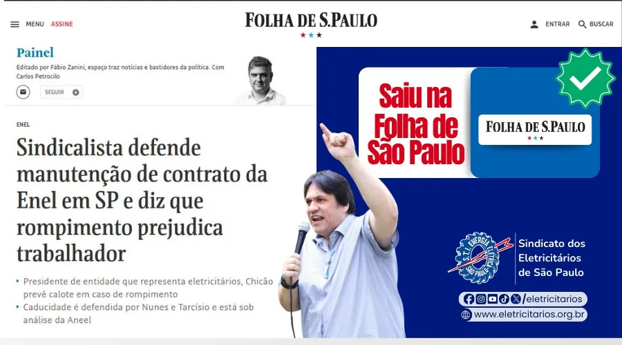 Por fim, a repercussão na Folha de S.Paulo reforça o protagonismo sindical e o compromisso permanente com energia de qualidade e respeito aos eletricitários brasileiros.