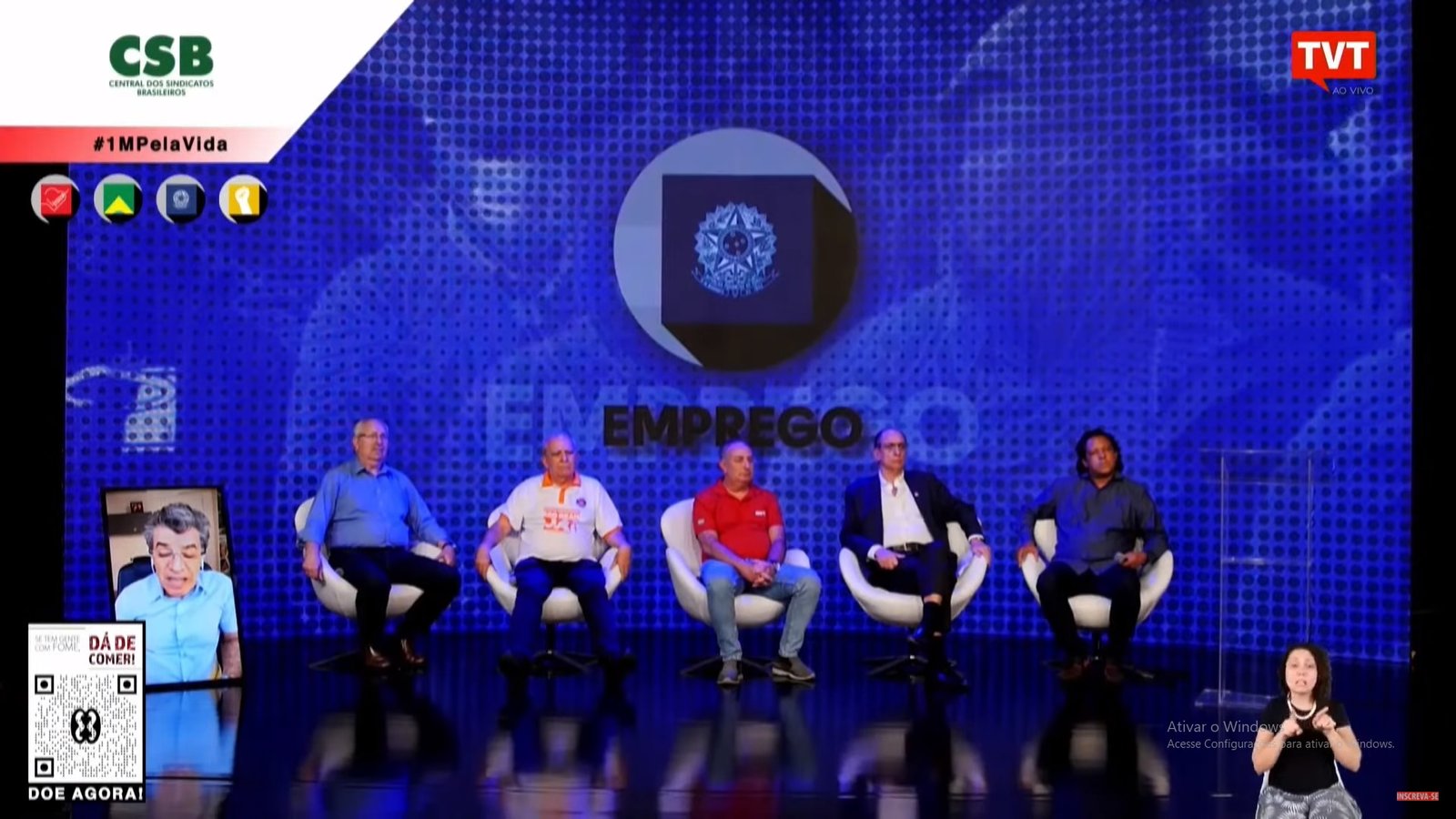 Paulo Betti e os presidentes das centrais sindicais, CSB, Antônio Neto, Força Sindical, Miguel Torres, CUT, Sérgio Nobre, UGT, Ricardo Patah, e CTB, Adilson Araújo, no 1º de Maio virtual por democracia, emprego e vacina para todos.
