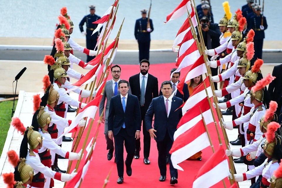 O presidente do Senado Federal, senador Davi Alcolumbre (União-AP), e o presidente da Câmara dos Deputados, deputado Hugo Motta (Republicanos-PB), caminham pela rampa do Congresso na abertura do ano legislativo de 2025. Foto: Pedro França/Agência Senado