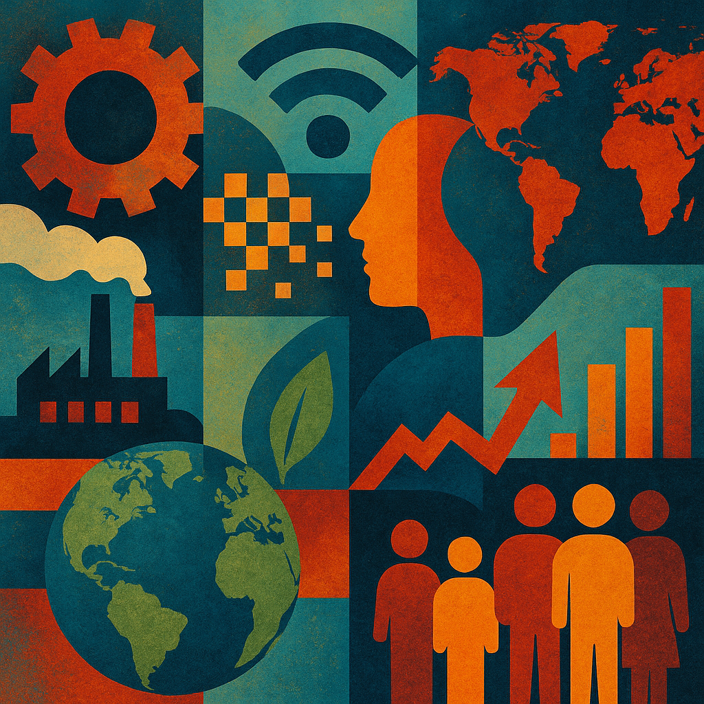 Vivemos uma mudança de época que decorre de grandes transições simultâneas: tecnológica/digital, climática/ambiental, demográfica e geopolítica/produtiva, esta última influenciada por disputas comerciais como as tarifas impostas pelos Estados Unidos. Essas transições são mais do que mudanças técnicas ou setoriais, são transformações civilizatórias que impactam a forma como produzimos, consumimos e nos organizamos socialmente.