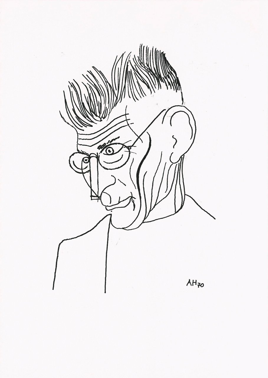 Samuel Beckett desenhado por Adolf Hoffmeister, 1970. Wikipedia.
