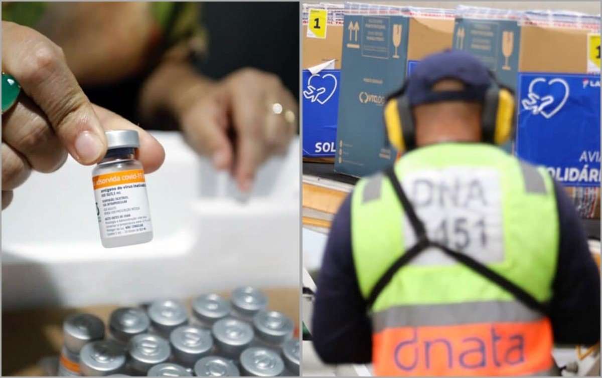 Vacinas chegando em Pernambuco e no Pará: continua a corrida para ampliar a imunização, que atinge 37,5% da população – Foto: Djair Pedro-SEI-PE/Rodrigo Pinheiro-Agência Pará