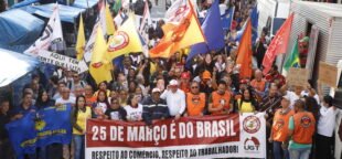 Comerciários protestam na 25 de Março contra tarifas de Trump