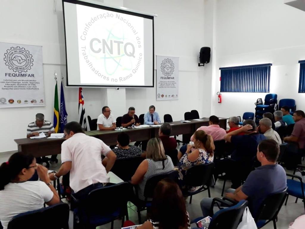 Por Fábio Casseb – No encontro, realizado na Colônia de Férias da Fequimfar (Federação dos Trabalhadores das Indústrias Químicas do Estado de São Paulo) os dirigentes sindicais dos setores Químicos de todo Brasil, também realizaram as eleições da direção da CNTQ.Antônio Silvan Oliveira foi reeleito presidente da Confederação para mais um mandato de quatro anos.