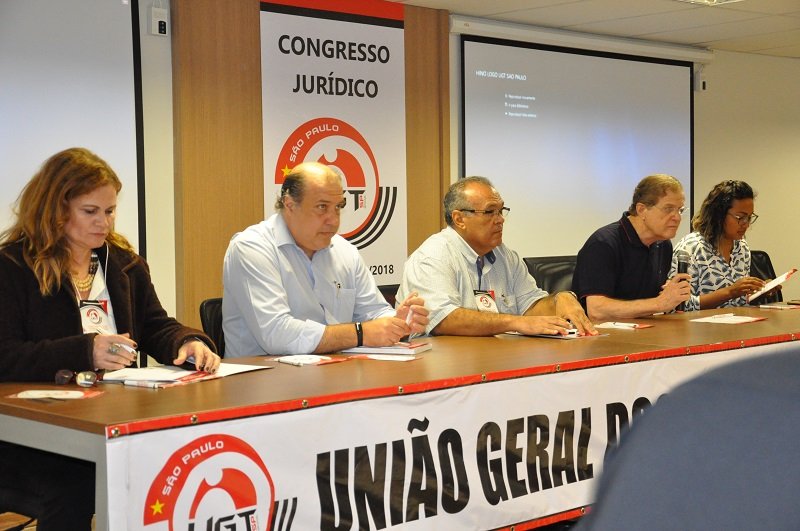 A mesa de trabalho foi mudando de acordo com as palestras, mas a principal, na abertura do evento, foi composta por Amauri Mortágua, presidente em exercício da UGT-SP; os diretores ugestistas José Gonzaga da Cruz, Daniela Gomes de Sousa, Rogério José Gomes Cardoso; Dr. João André Vidal de Souza, advogado da Fecomerciários e coordenador do Congresso Jurídico; e Cyntia Lacorte Borelli, advogada do Sindicato dos Trabalhadores em Empresas de Prestação de Serviços de Asseio, Conservação e Limpeza Urbana (Siemaco Araraquara).
