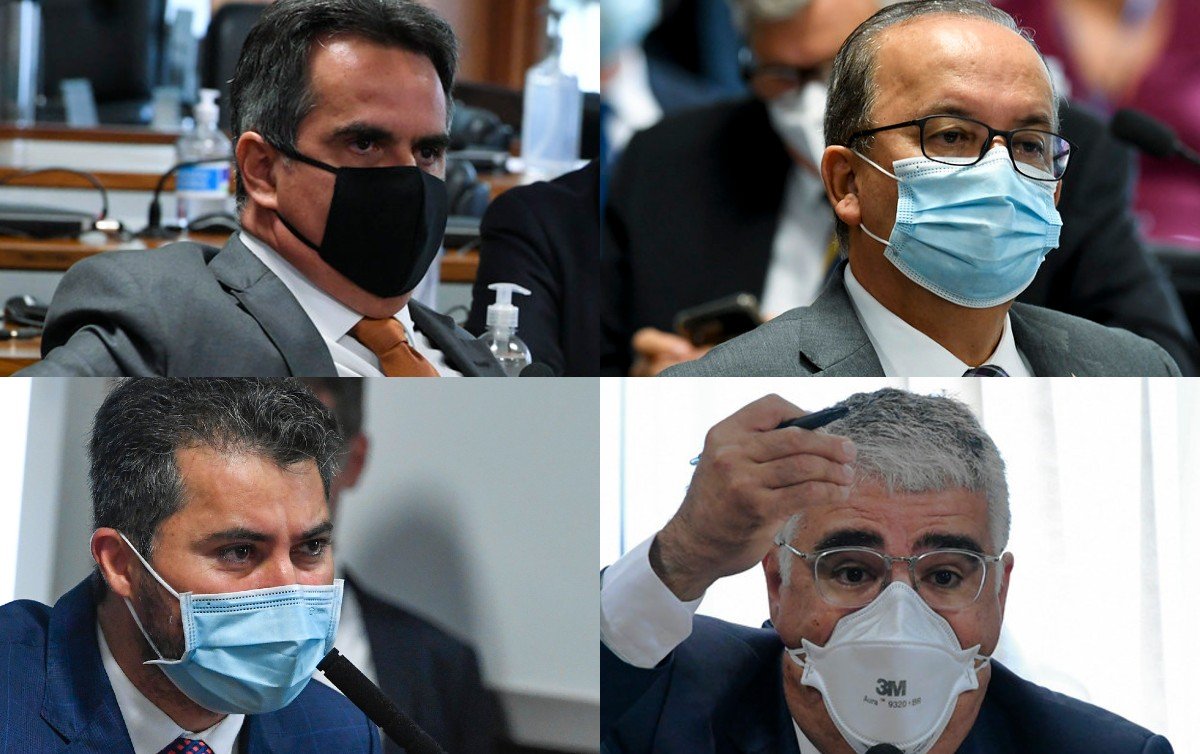 Ciro Nogueira, Jorginho Mello, Marcos Rogério, Eduardo Girão (da esq. para a dir. em sentido horário). Grupo bolsonarista na CPI da Covid indica que vai conturbar os trabalhos – Fotos: Edilson Rodrigues e Jefferson Rudy/Ag. Senado