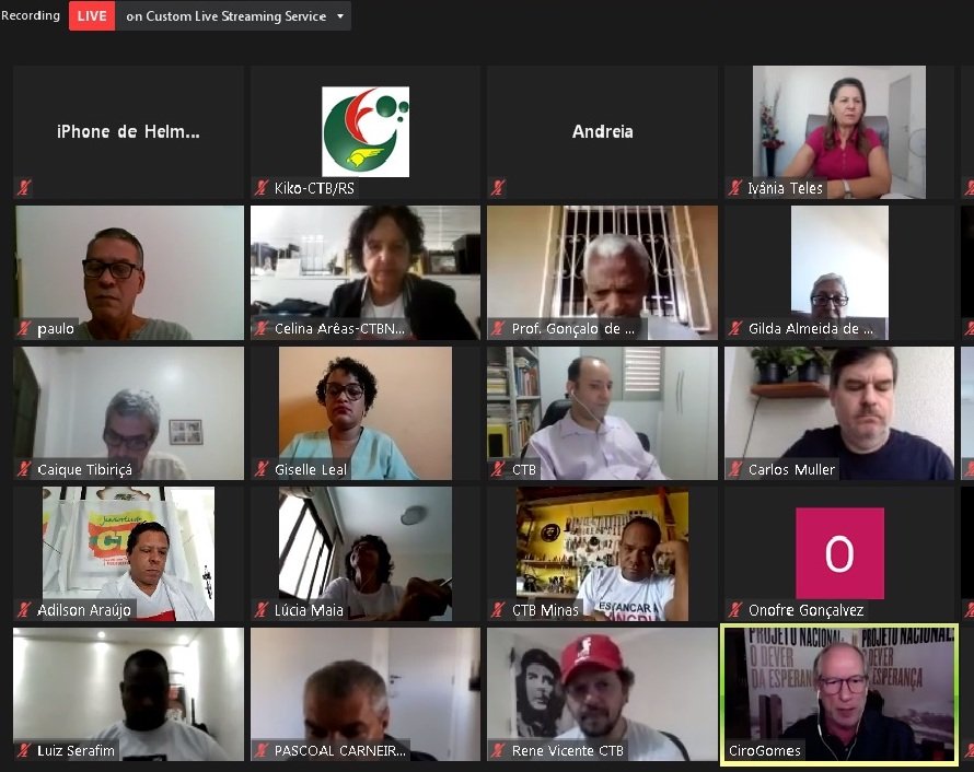 A Central dos Trabalhadores e Trabalhadoras do Brasil realizou sábado (20) sua 1ª Plenária Nacional Virtual. A atividade contou com participações do governador do Maranhão Flávio Dino, do ex-ministro Ciro Gomes e do deputado Orlando Silva (PCdoB-SP).