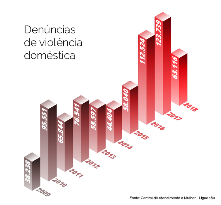 Segundo a Central, desde 2009 foram relatados quase 737 mil casos de violência doméstica – mais de 80% do total de denúncias recebidas no canal. Das agressões denunciadas em ambiente familiar nos últimos anos, quase 60% são físicas e cerca de 30% psicológicas, tipos de violência que geralmente precedem o crime do feminicídio.