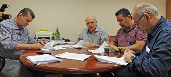 Eliseu Silva (esquerda), durante assinatura do acordo coletivo na Campanha Salarial 2018 – Foto: Arquivo