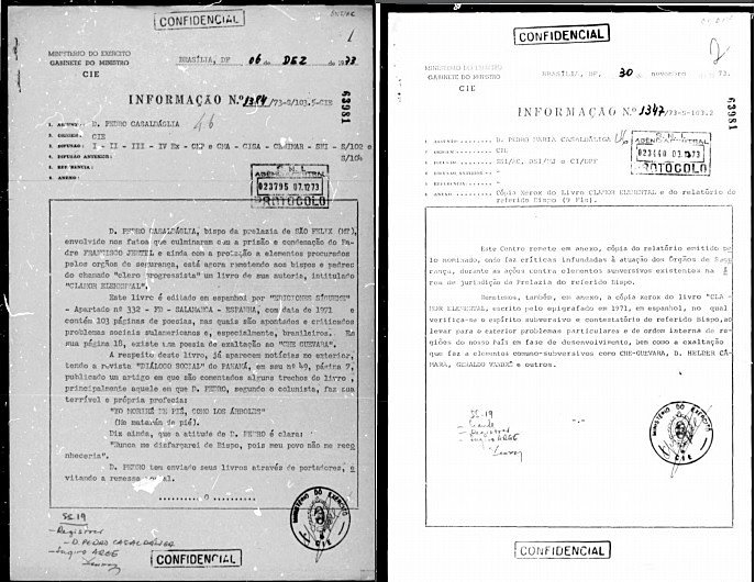 Durante a ditadura, a preocupação era mais ostensiva. Em um relatório de julho de 1973 os militares chegaram a interceptar uma carta entre o bispo de Propriá, em Sergipe, e o bispo de São Félix, em Mato Grosso. Na carta, o clérigo do nordeste elogia o colega na atuação em defesa do padre Francisco Jentel, preso e condenado pelos militares por liderar uma revolta de posseiros contra a Fazenda Codeara.