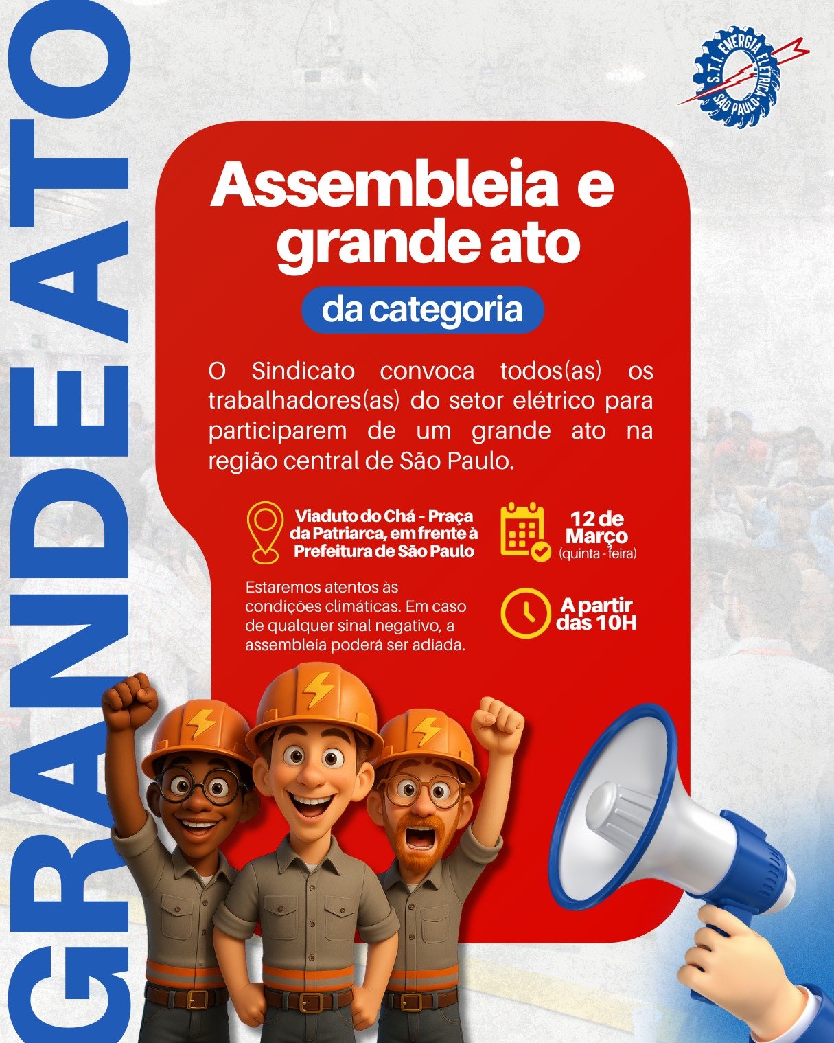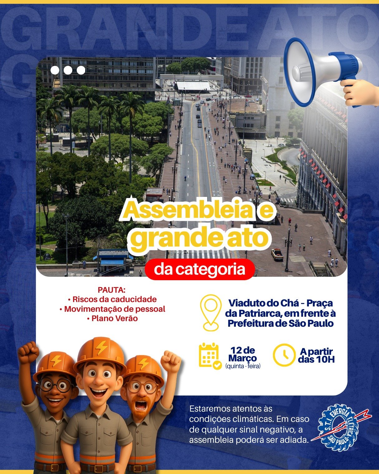 O Sindicato dos Eletricitários de São Paulo mobiliza trabalhadores da Enel Distribuição São Paulo para um grande ato público em defesa dos empregos e do serviço.