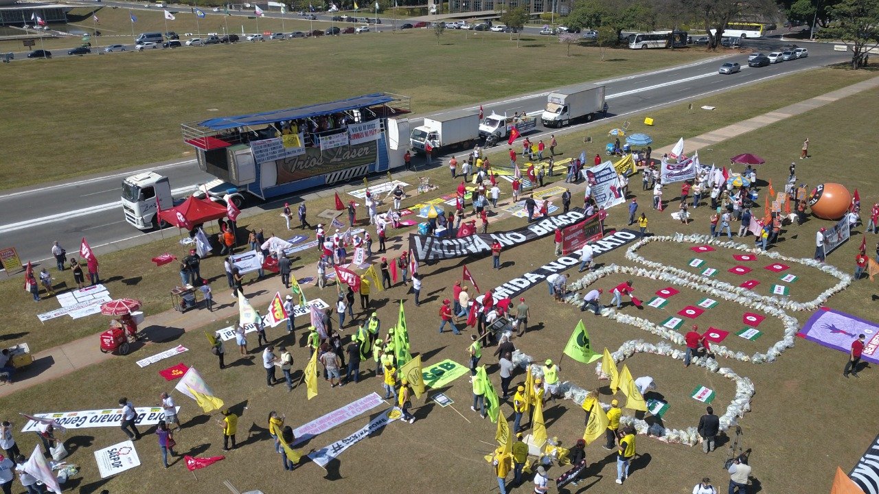 O ato, organizado pelas Centrais Sindicais e pelos Movimentos Sociais, de forma unitária, foi em frente ao Congresso Nacional, porém sem aglomeração e sob todos os protocolos sanitários para evitar contágio e propagação do Coronavírus, em respeito à vida. Vale destacar que diversas lideranças políticas estiveram no ato. Entre eles: Gleysi Hoffman, presidente do PT, e Jandira Fegali , deputada federal (PCdoB/RJ).