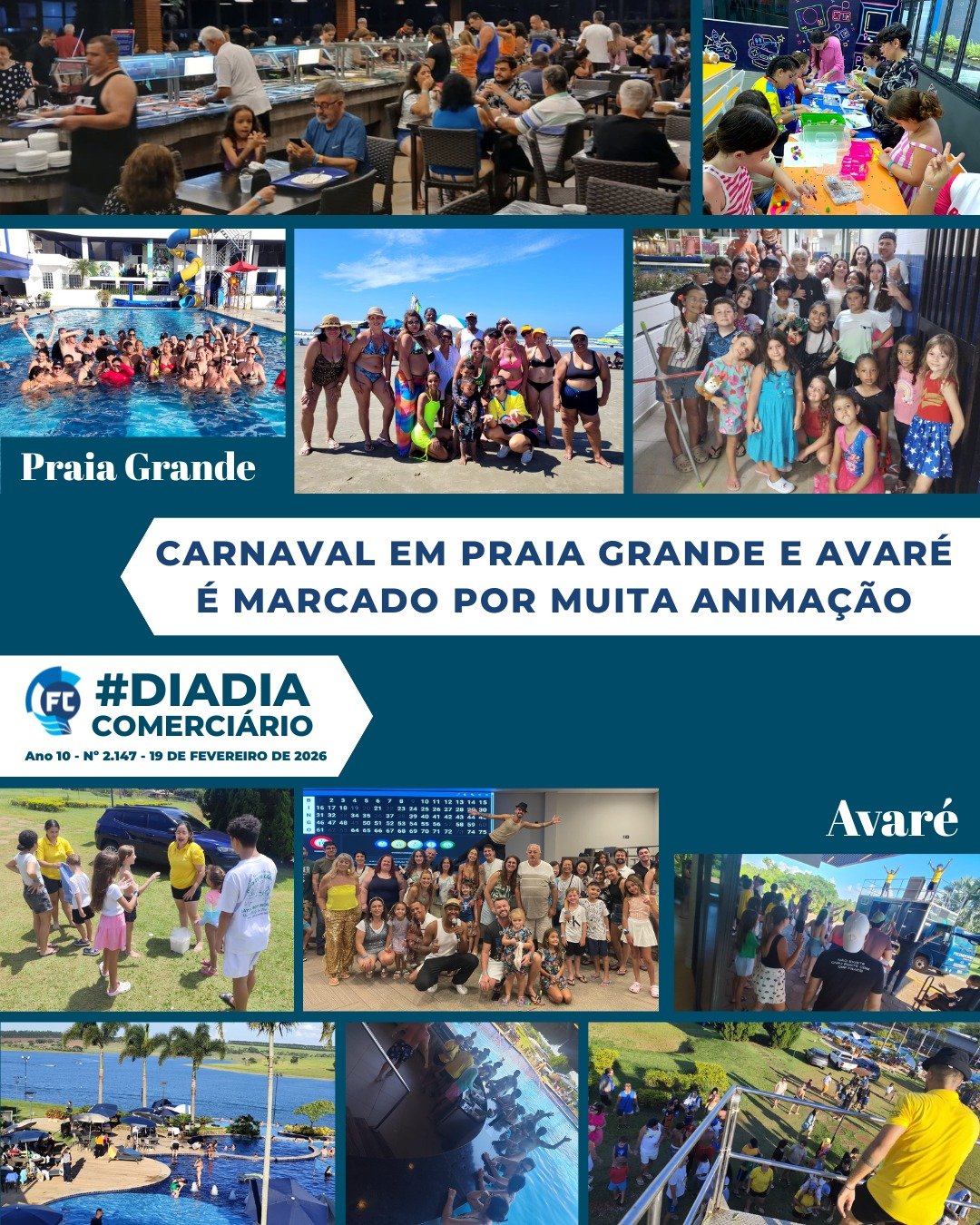 Esses dois paraísos comerciários receberam centenas de pessoas durante o feriado com muito conforto e segurança e inesquecíveis dias de folia com agendas carnavalescas muito animadas. Sempre sob a observação atenta de salva-vidas, as piscinas climatizadas de ambos os lugares refrescaram os banhistas que passaram um Carnaval com dias de muito sol.