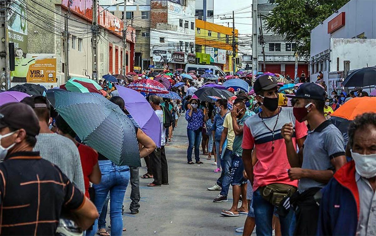 Filas para saque do benefício em Caruaru (PE). Fim do auxílio emergencial vai agravar desemprego e condição de vida, sobretudo dos informais – Foto: Prefeitura de Caruaru