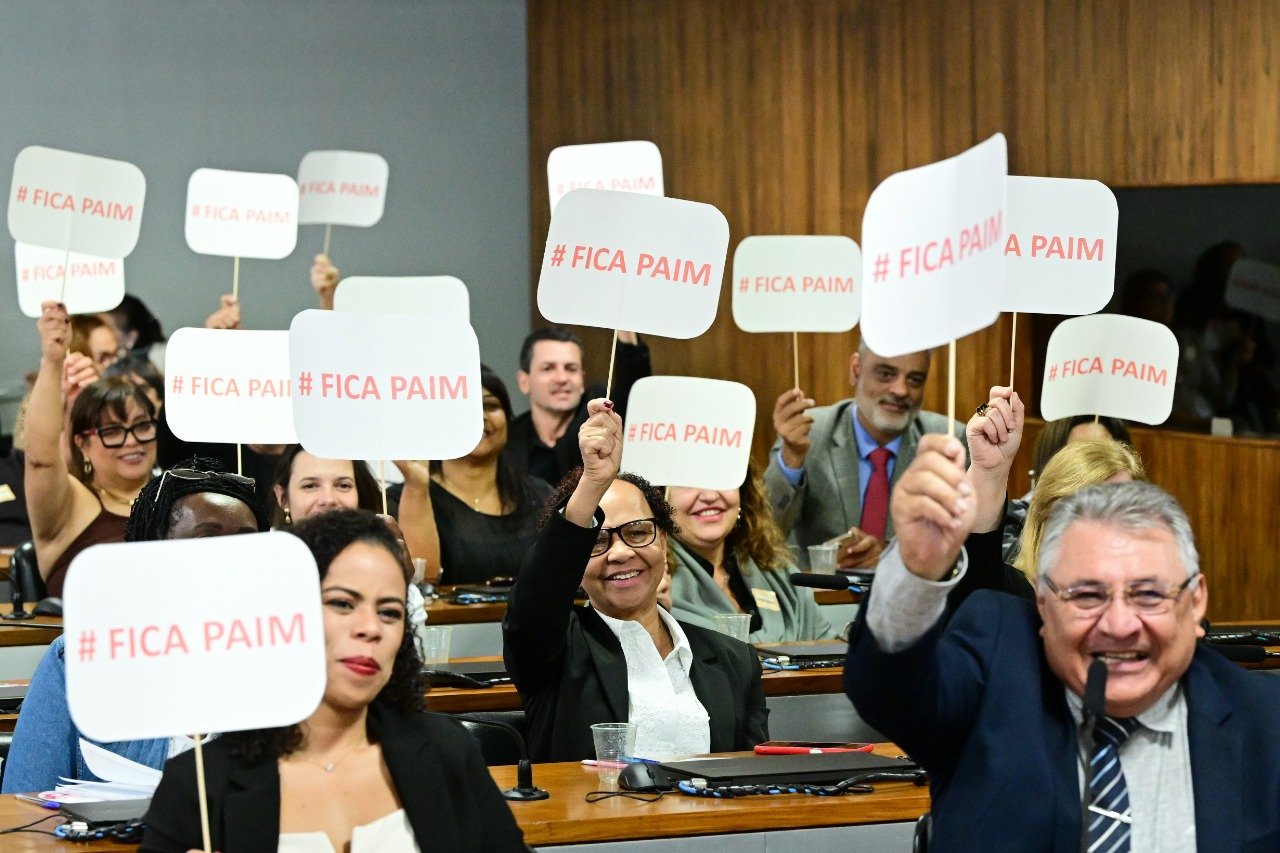 Durante audiência pública, no dia 8, sindicalistas exibiram placas com os dizeres #ficaPaim