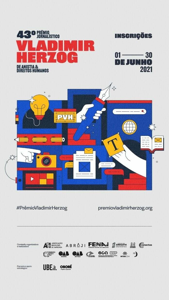 Estão abertas até dia 30 as inscrições para a 43ª edição do Prêmio Vladimir Herzog de Anistia e Direitos Humanos. Organizado por uma comissão de entidades, o evento terá como novidade a categoria ‘livro-reportagem’. Ela se soma às tradicionais ‘arte’, ‘fotografia’, ‘produção jornalística em texto’, ‘em áudio’, ‘em vídeo’ e ‘em multimídia’.