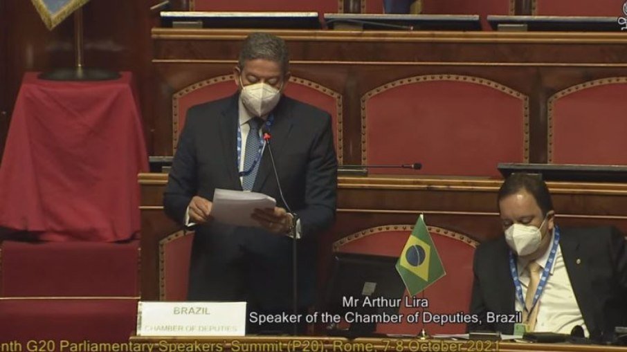 Presidente da Câmara participou da 7ª Cúpula de Presidentes dos Parlamentos do G-20 – Foto: Reprodução TV Senado/Itália