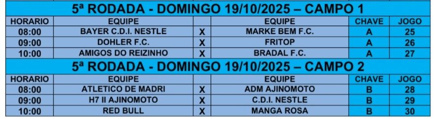 No próximo domingo (19), olhos atentos para Bayern CDI Nestlé X Markbem. Seguem os jogos da 5ª rodada: