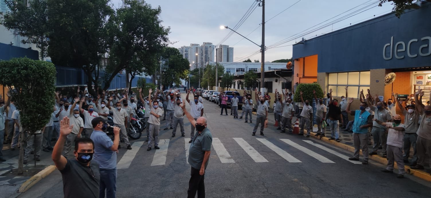 Assembleia na Deca, nesta sexta, 11 de dezembro de 2020, com presenças de Miguel Torres, presidente da Força Sindical e do Sindicato dos Metalúrgicos de São Paulo e Mogi das Cruzes, dos diretores Ceará e Maurício Forte e do assistente do secretário-geral Arakém