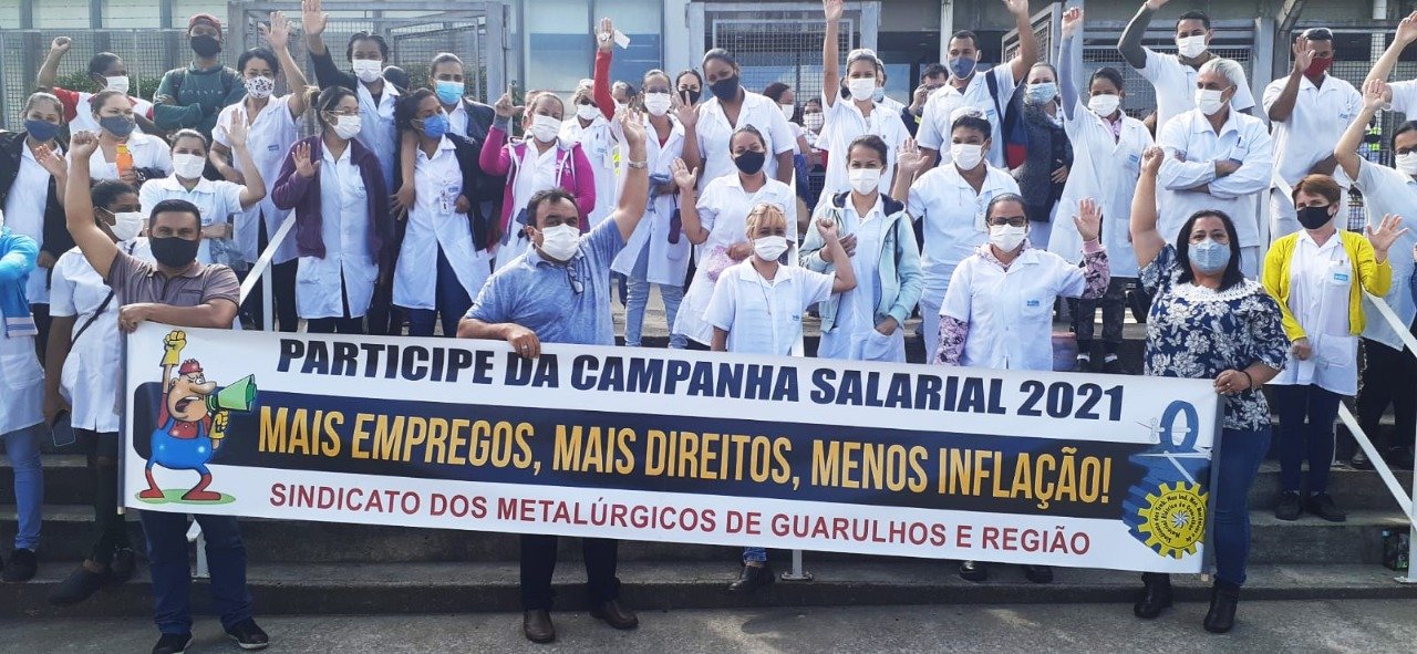 Milhares de trabalhadores estão engajados na Campanha Salarial 2021 do Sindicato dos Metalúrgicos de Guarulhos e Região. Todos os dias, dirigentes vão às fábricas e realizam assembleia com a categoria.