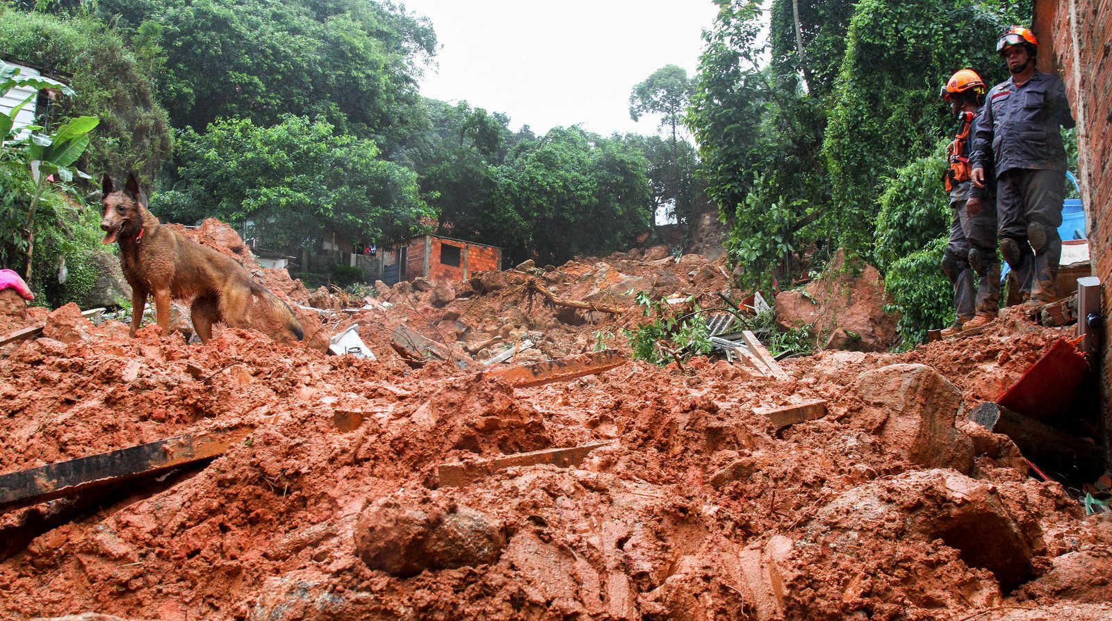 Devidos as chuvas intensas no Litoral Sul de São Paulo, atingindo as cidades de Santos, Guarujá e São Vicente, o Corpo de Bombeiros de São Paulo trabalham em buscas de sobreviventes em deslisamentos – Foto: Govesp