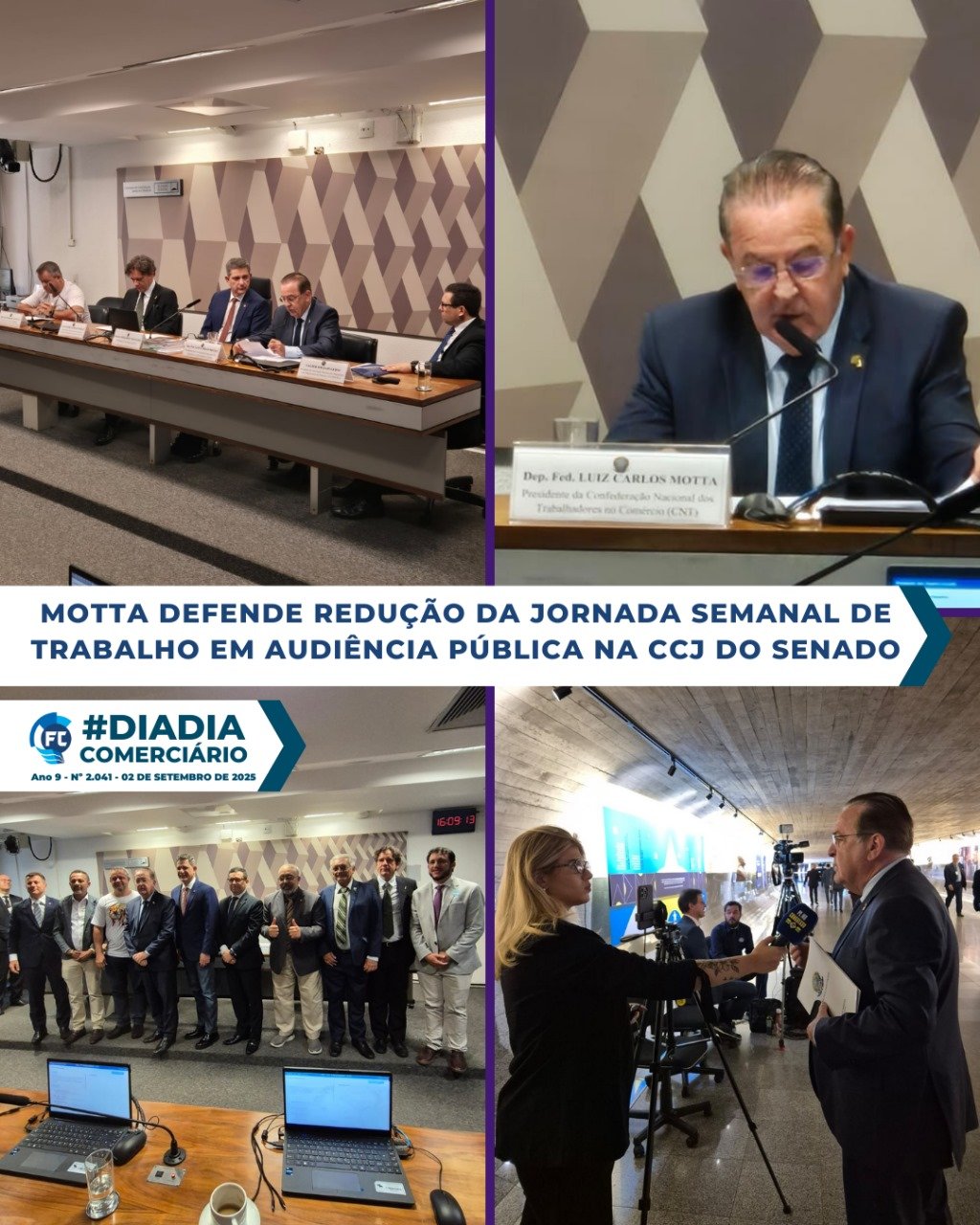 Sob a presidência do senador Rogério Carvalho (PT/SE), o presidente da CNTC, da Fecomerciários e Deputado Federal, Luiz Carlos Motta, participou, nesta terça-feira, 2, de produtiva Audiência Pública na Comissão de Constituição, Cidadania e Justiça (CCJ) do Senado Federal.