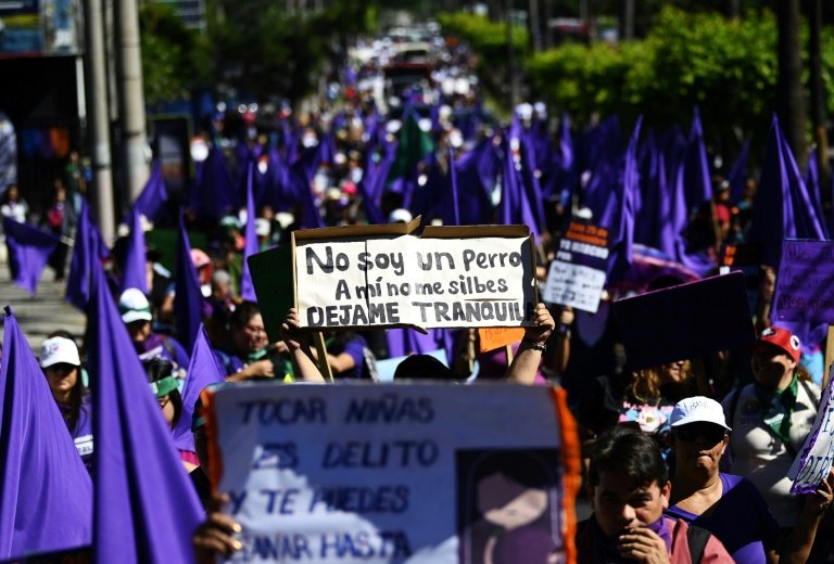 “Nós mulheres somos vítimas de violência de todo tipo e é necessário que todo o Estado se envolva para que pare a violência contra as meninas e as mulheres”, disse à AFP Violeta Artiga, estudante de psicologia que participou da manifestação em San Salvador, capital de El Salvador, com um lenço roxo no pescoço, símbolo dessa luta para exigir o fim da violência que sofrem e para que os casos não fiquem impunes.