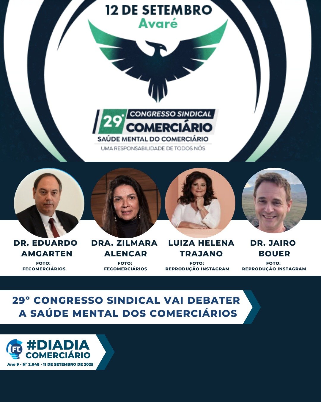 29º Congresso Sindical Comerciário terá palestras sobre saúde mental e trabalho sustentável.