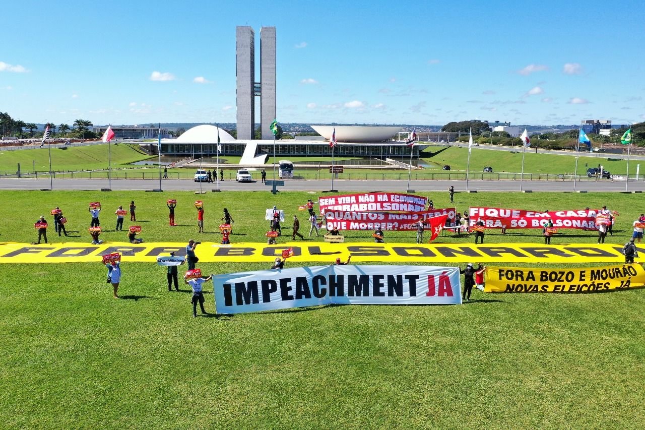 Um ato político, respeitando o distanciamento entre os manifestantes e com uso obrigatório de euquipamentos de segurança foi realziado logo após a entrega do pedido de impeachment ao Congresso.