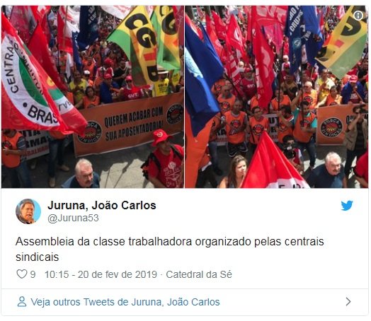 “Eu creio que as centrais sindicais têm trabalhado o movimento do ponto de vista unitário. A manifestação na Praça da Sé [São Paulo] é uma expressão de todas as centrais sindicais, de todas as colorações político-ideológicas. Agora, é claro que esse debate, na Câmara e no Senado, vai se revelar, sim, diferente, porque tem opiniões dos servidores públicos, tem opinião de militares, tem opinião de trabalhadores do setor privado.”