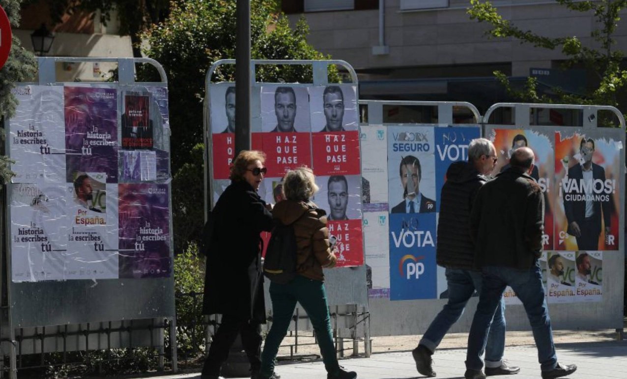 As eleições gerais na Espanha aconteceram, neste domingo, sob forte indefinição. Segundo os primários, com 92,27% das urnas apuradas, os socialistas do PSOE (122) e o Unidas podemos (42) somam 164 deputados. Não chegam, portanto, à maioria absoluta das cadeiras, o que é necessário para indicar o presidente do Governo. O bloco de esquerda dependerá de outros partidos para governar. Pela direita, PP (65), Ciudadanos (57) e Vox (24) somam, até o momento, 146. O resultado é similar ao que apontou a pesquisa de boca de urna da GAD3, encomendada pela emissora TVE —a primeira a ser publicada após o fechamento dos colégios eleitorais. Os dados mostravam que a vitória seria do bloco da esquerda por uma margem estreita de diferença. O PSOE, do presidente Pedro Sánchez, seria o vencedor, conquistando de 116 a 121 cadeiras. Junto com Unidas Podemos somariam entre 158 e 166 deputados.