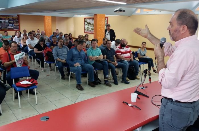 Em palestra nesta terça-feira (27), no auditório lotado do Sindipolo, em Porto Alegre, o diretor técnico do Departamento Intersindical de Estatística e Estudos Socioeconômicos (Dieese), Clemente Ganz Lúcio, alertou os dirigentes sindicais para as profundas mudanças em andamento na economia e na política, que estão impactando o movimento sindical. “Querem adequar os direitos sem os sindicatos”, destacou.