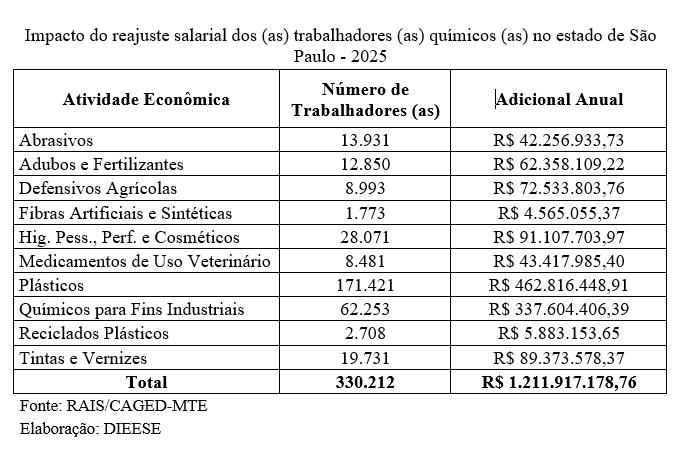 Ao todo, cerca de 330 mil trabalhadores químicos serão beneficiados, abrangendo setores como plásticos, tintas, cosméticos, fertilizantes, abrasivos, defensivos agrícolas, fibras sintéticas e medicamentos veterinários.