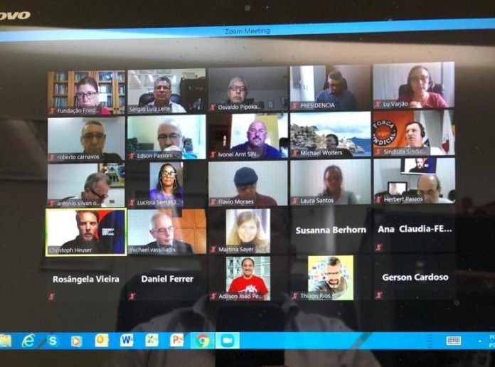 A delegação dos Químicos da Força, que participou de forma virtual, contou com a presença de Edson Dias Bicalho, secretário geral da FEQUIMFAR e membro do comitê executivo da IndustriALL, Antonio Silvan Oliveira, presidente da CNTQ, Laura Santos, coordenadora do departamento de mulheres e identidade de gênero da FEQUIMFAR, Herbert Passos Filho, presidente interino da Força SP e presidente dos Químicos da Baixada Santista, Issac Wallace, presidente da Federação dos Químicos do RJ, Vandeir Messias, presidente dos Químicos de BH, e Flávio Moraes, presidente dos Químicos de São Carlos.