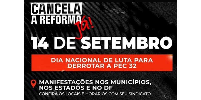 Já nesta segunda-feira (13), haverá um tuitaço a partir das 19h, coma hashtag #Pec32vaiflopar. A pressão pode também ser feita por cada brasileiro e brasileira pelo site “Na pressão”, onde é possível enviar mensagens diretamente aos parlamentares, por WhatsApp, e-mail ou telefone, para que votem contra a proposta.