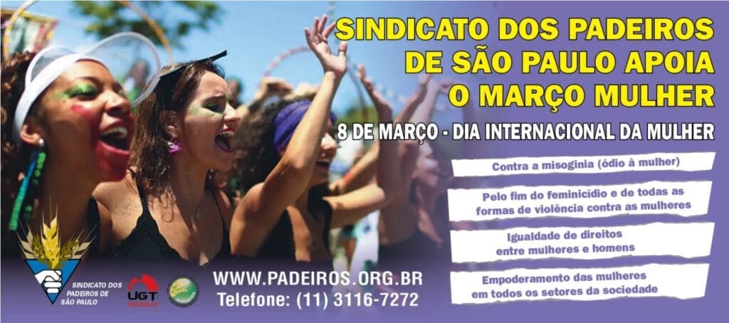 O Sindicato dos Padeiros de São Paulo, enfim, defende mais políticas públicas voltadas às mulheres, o empoderamento das companheiras na política, no mundo do trabalho e na sociedade em geral, a igualdade de oportunidades, um extremo respeito à Lei 14.611 que garante igualdade salarial entre mulheres e homens em uma mesma função e o fim do feminicídio, do racismo, da misoginia, do preconceito e de todas as demais formas de violência física e psicológica contra as mulheres.