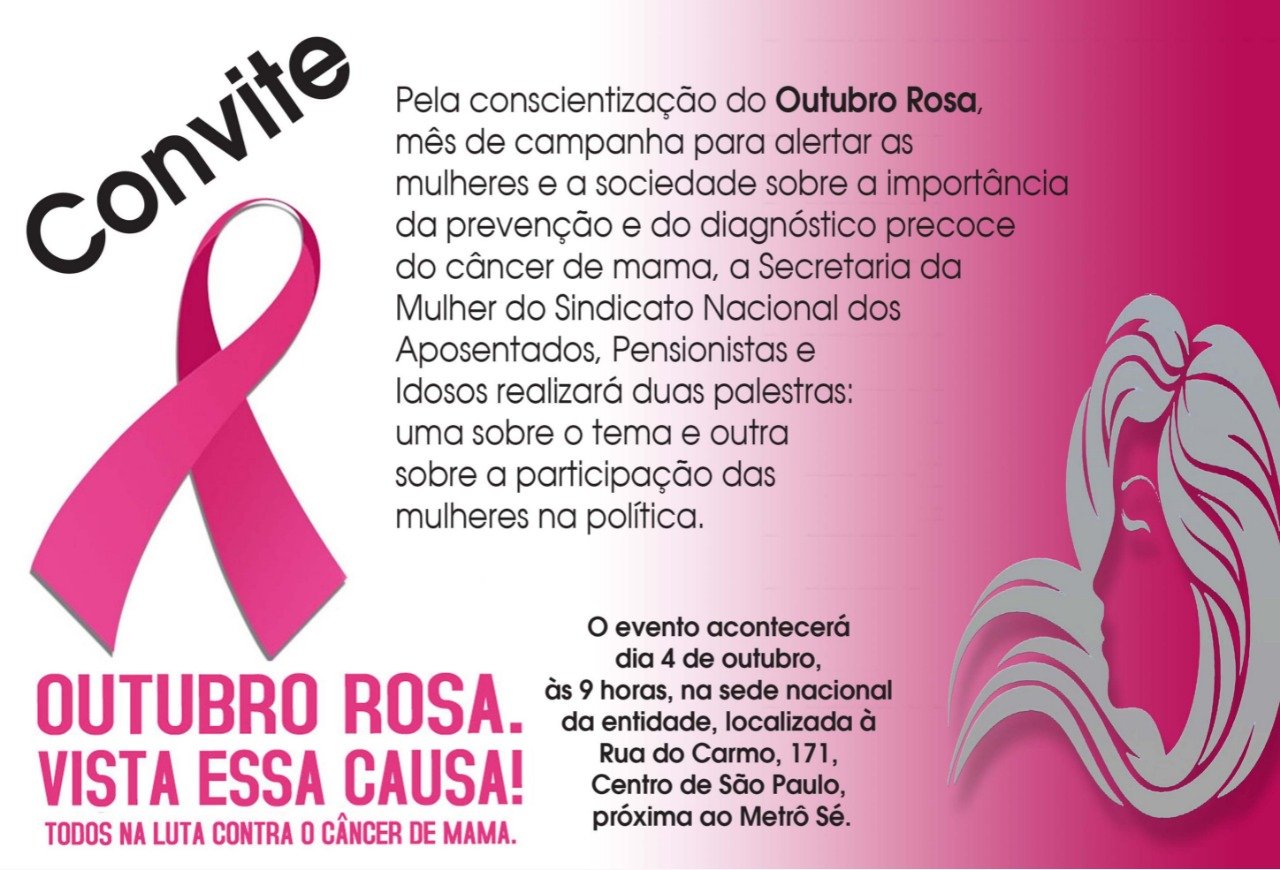 Para Andrea Angerami Gato, Diretora Nacional da Mulher do Sindnapi, “a proposta das palestras é conciliar orientações sobre a saúde, tema central do Outubro Rosa, mas também debater a importância e a participação das mulheres nas políticas públicas”.