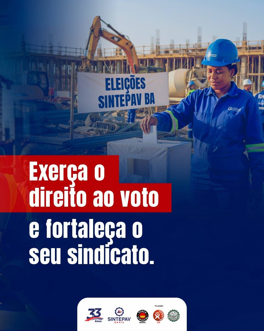 O Sindicato dos Trabalhadores da Indústria da Construção Pesada e Montagem Industrial do Estado da Bahia (Sintepav-BA) realiza, nos dias 25 e 26 de fevereiro de 2026, as eleições para a diretoria da entidade em todo o estado.